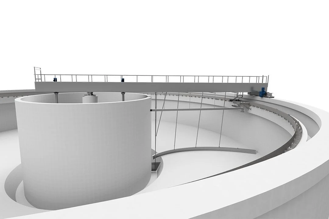 Il chiarificatore è lo stadio finale di affinamento meccanico. Riceve l'effluente dal letto di fitodepurazione e ne completa la chiarificazione per sedimentazione dei solidi residui ancora in sospensione.