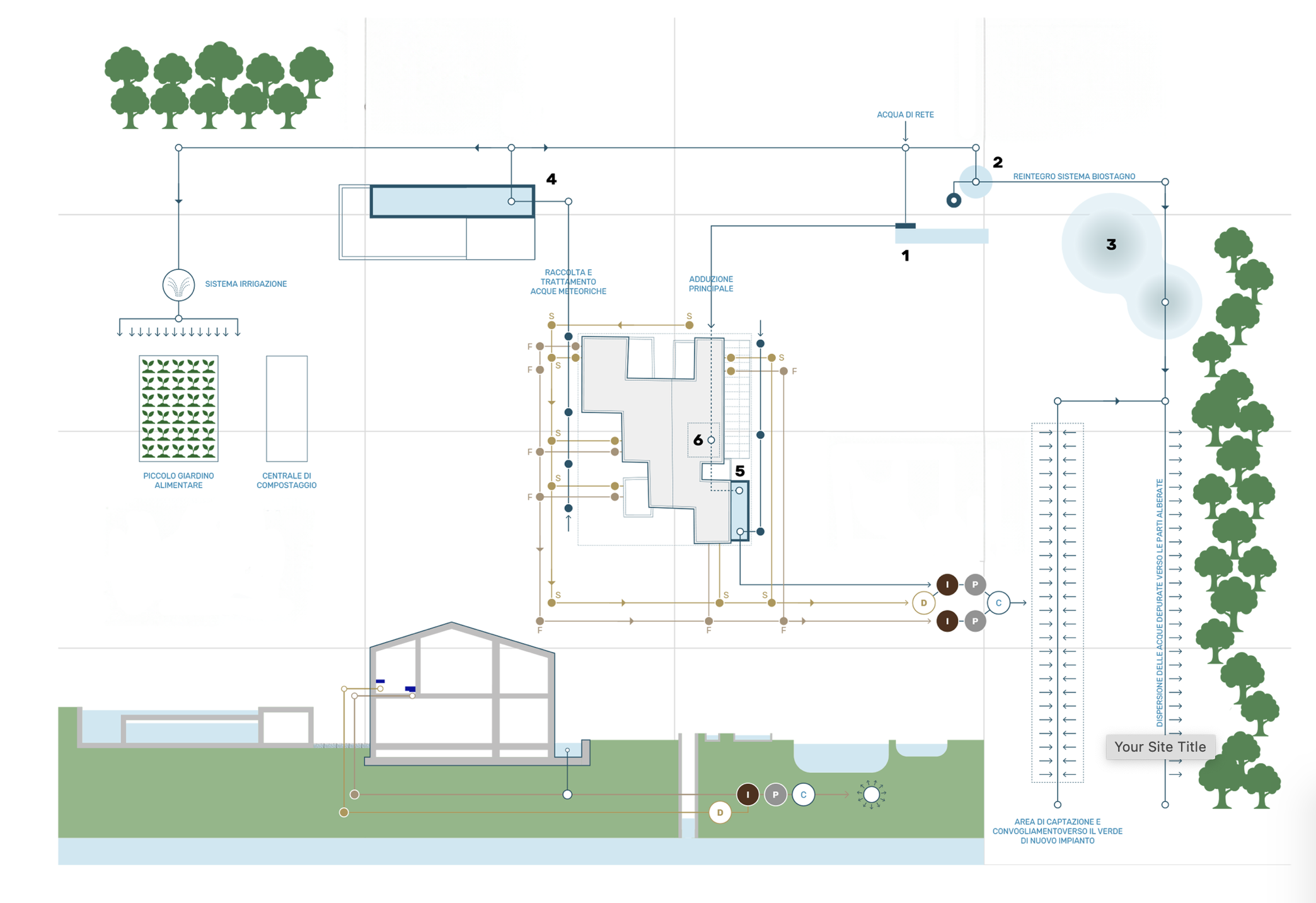 Distribuzione Edificio (nodo 6): unica uscita principale verso le utenze compatibili con acqua non potabile, tra cui wc e usi tecnici.
