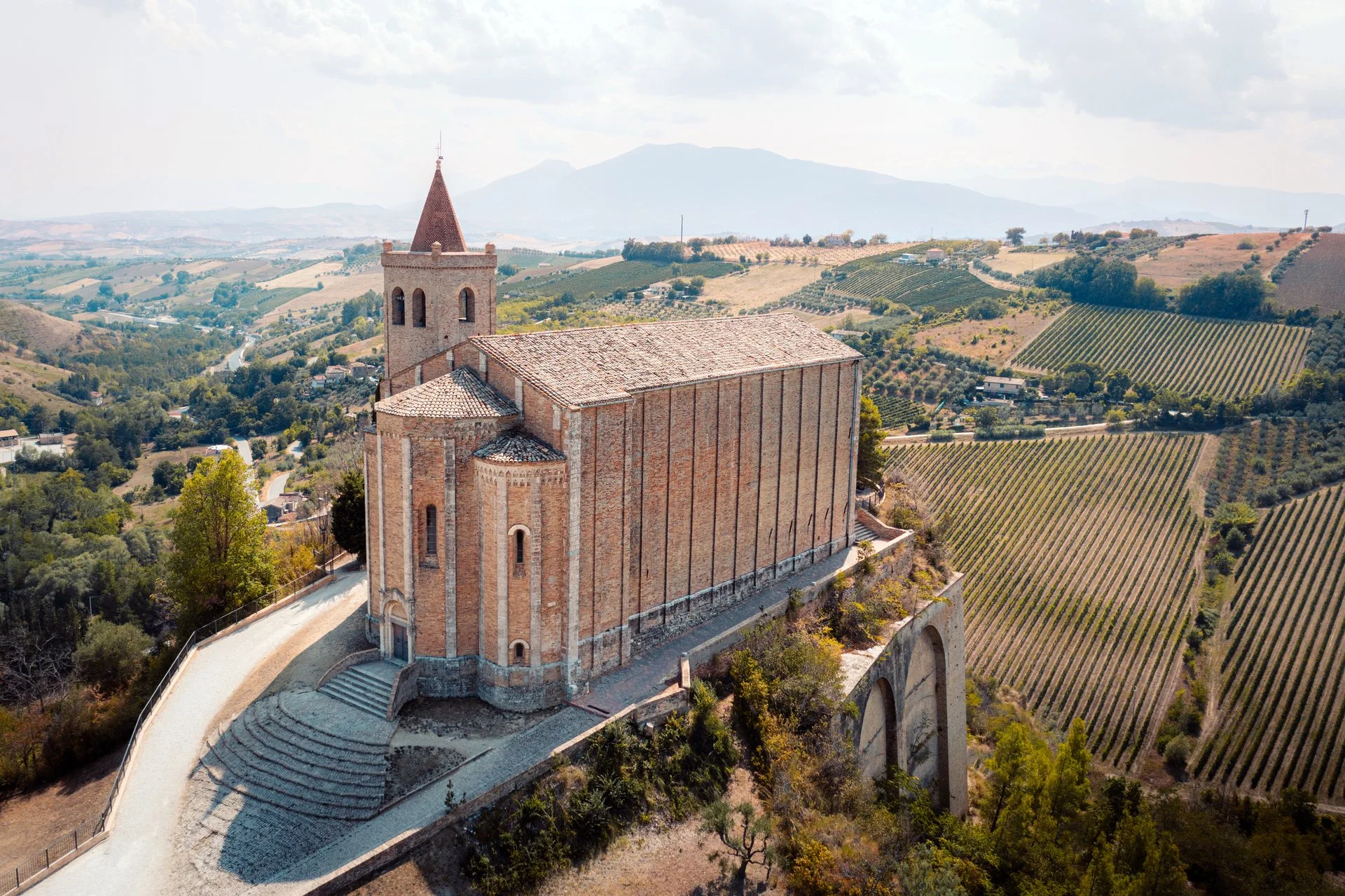 Costruita nel 1330 su un’altura che domina il paesaggio tra le valli del Tronto e del Tesino, la Chiesa di Santa Maria della Rocca è il simbolo spirituale e visivo di Offida. La sua imponenza è visibile già da lontano: sorge su uno sperone roccioso che affaccia su colline coltivate, uliveti e vigneti, offrendo un panorama che incanta in ogni stagione.